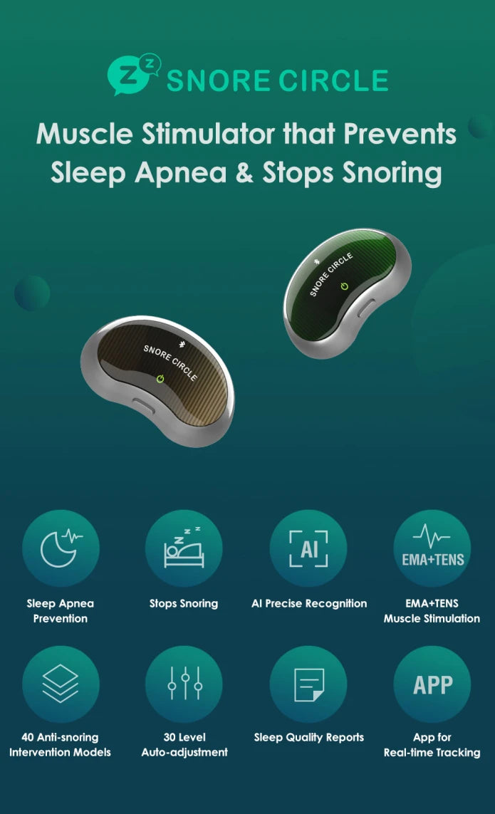 The Snore Circle Anti-Snoring Device offers an innovative solution to snoring. By using electronic muscle stimulation technology, it targets the underlying cause of snoringvibrations in the throat muscles. This device helps to reduce snoring, ensuring that you and your partner can finally sleep well and wake up feeling refreshed.